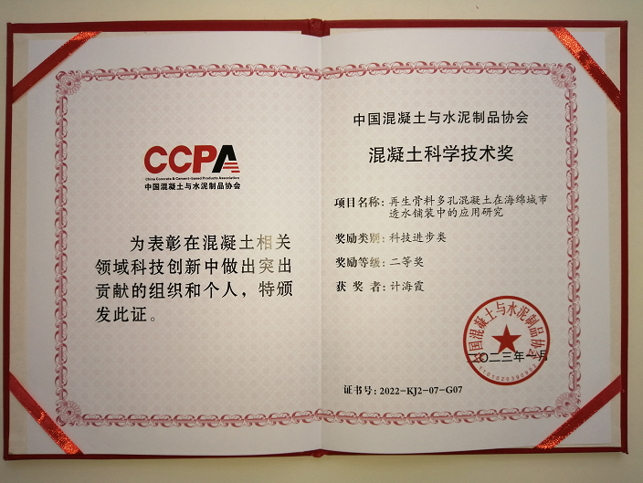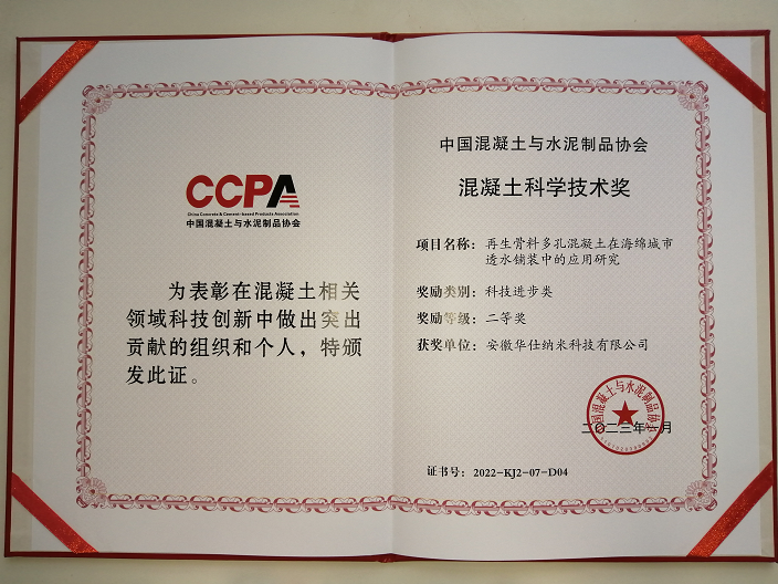 安徽華仕納米科技有限公司申報(bào)項(xiàng)目:“再生骨料多孔混凝土在海綿城市透水鋪裝中的應(yīng)用研究” 榮獲“科技進(jìn)步類二等獎(jiǎng)” !