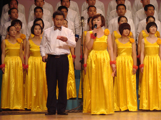 (上圖:服裝紅色、黃色—黨旗的顏色)