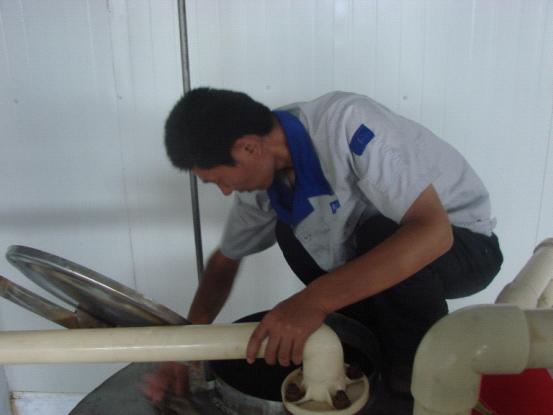 麥芽糖醇車間涼水塔因長期運(yùn)行,涼水塔池子內(nèi)雜物比較多,經(jīng)常造成泵堵塞,影響生產(chǎn)工作,程杰、李小飛、呂建三位同志不怕臟、不怕累,冒著高溫下到?jīng)鏊氐浊謇黼s物,連續(xù)工作5個(gè)多小時(shí),清理干凈了兩個(gè)池子。