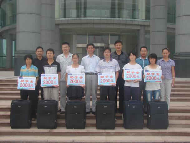 愛心助學(xué),成就夢想。8月10日上午,我集團在工業(yè)園一號會議室舉行2011年“圓夢大學(xué)”助學(xué)金發(fā)放儀式。王星云董事長、趙光輝總經(jīng)理出席。王星云董事長親自為六名家境困難、品學(xué)兼優(yōu)的大學(xué)生每人發(fā)放助學(xué)金2000元。