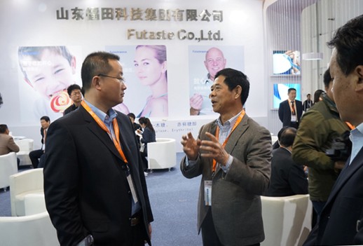 (上圖:禹城市市長(左)參觀福田展區(qū))
