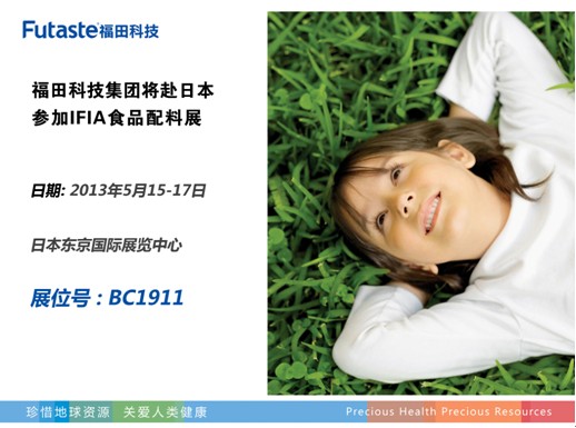 Ifia展是日本最大的食品添加劑和配料及健康食品展覽會(huì),是日本市場最權(quán)威的產(chǎn)品平臺(tái)。日本國際食品配料、添加劑及健康食品展覽會(huì)(ifia/HFE 2013),將于5月15-17日在日本東京國際展覽中心舉行,屆時(shí)我集團(tuán)將赴日參展,展位號(hào)為:BC1911,歡迎廣大新老客戶前來參觀指導(dǎo)。