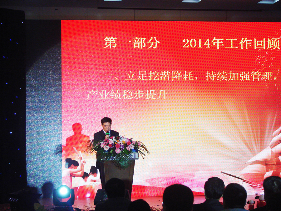 董事長王星云在年會上作了工作報告,全面總結(jié)了2014年集團各項工作,安排部署了2015年的工作任務(wù)目標(biāo),他指出,集團干部職工要立足崗位、扎實工作,開啟新動力,凝聚正能量,合力打造一流的產(chǎn)品,一流的品牌,一流的管理,一流的團隊。