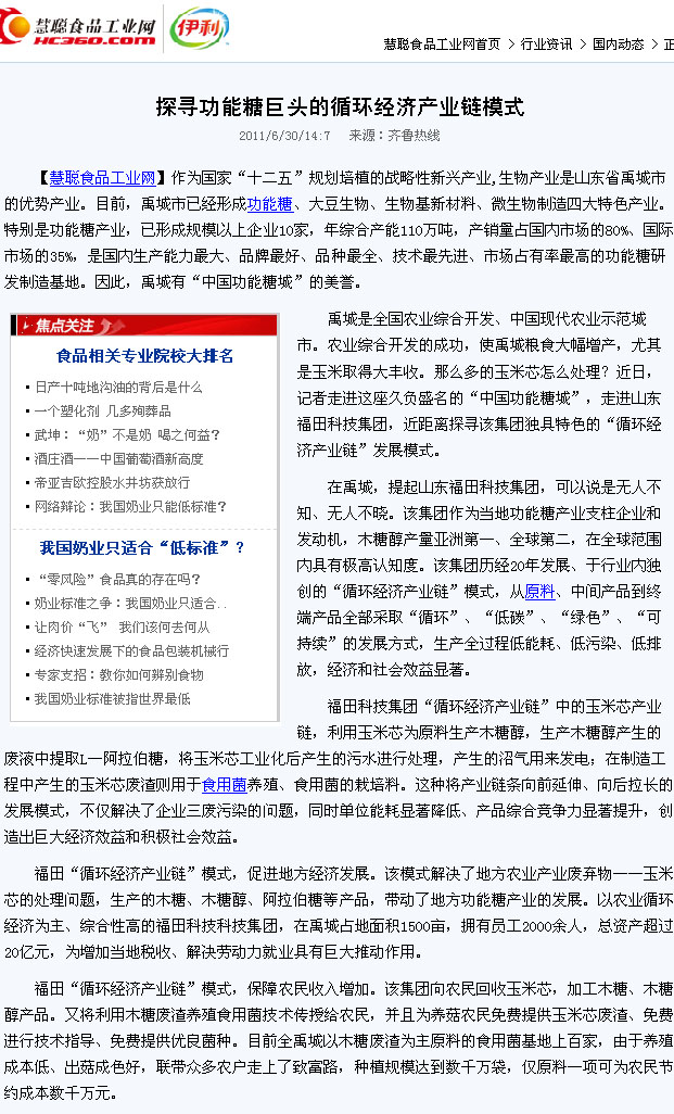 慧聰食品網(wǎng):探尋功能糖巨頭的循環(huán)經(jīng)濟(jì)產(chǎn)業(yè)鏈模式