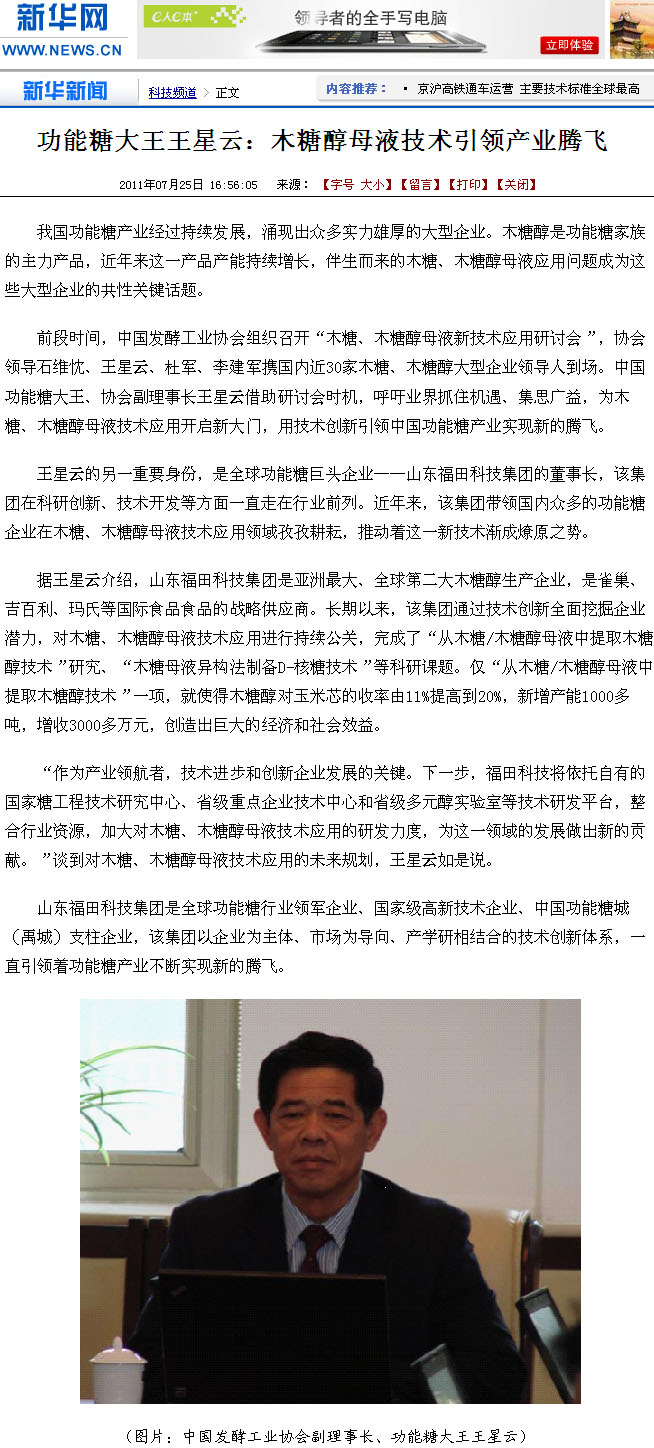 新華網(wǎng):功能糖大王王星云:木糖醇母液技術(shù)引領(lǐng)產(chǎn)業(yè)騰飛